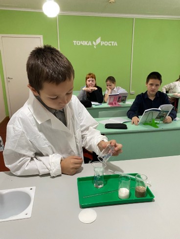 19 ноября на уроке естествознания в естественно-научной лаборатории Точки Роста обучающимся 5 класса Горшковым Артёмом проведён лабораторный опыт «Определение растворимости веществ фильтрованием».